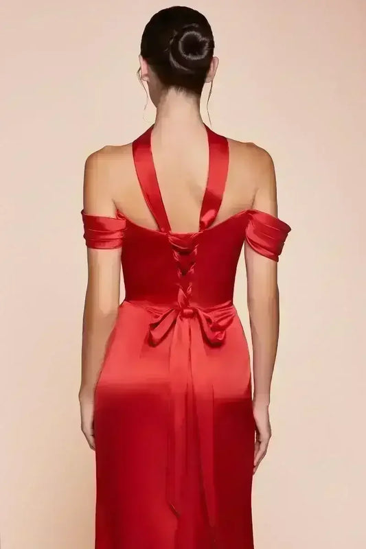 Piper Maxi Dress - Fitted Satin Halter Dress