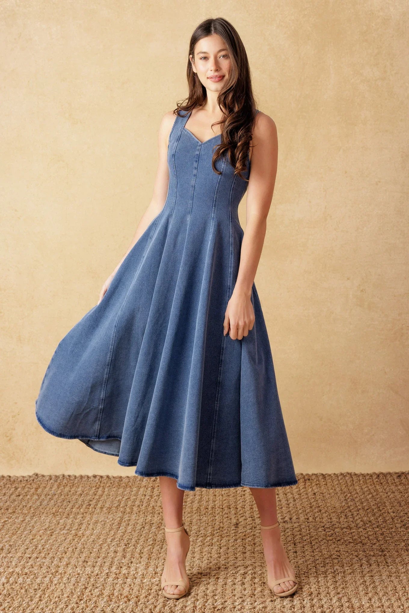 PRETTIEST BEHAVIOR DENIM MIDI DRESS