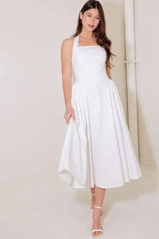 BREE BUTTON DOWN MIDI DRESS - WHITE