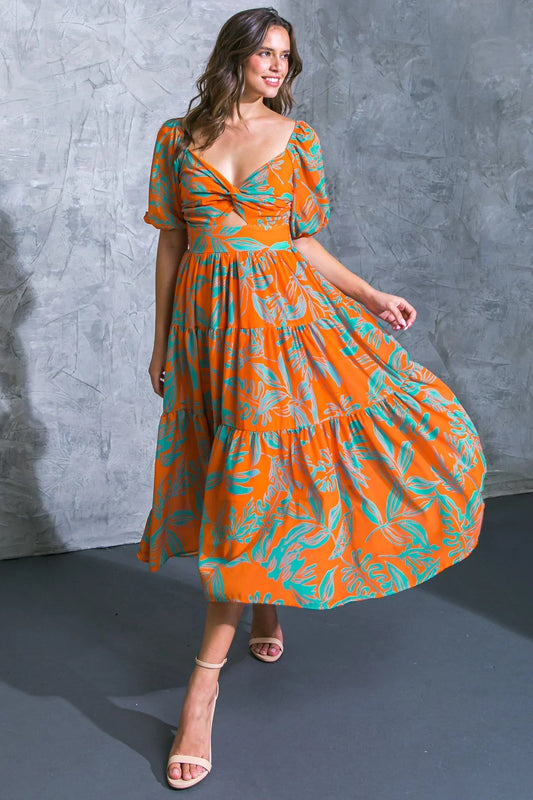 TUSCAN SUNSET COGNAC MIDI DRESS