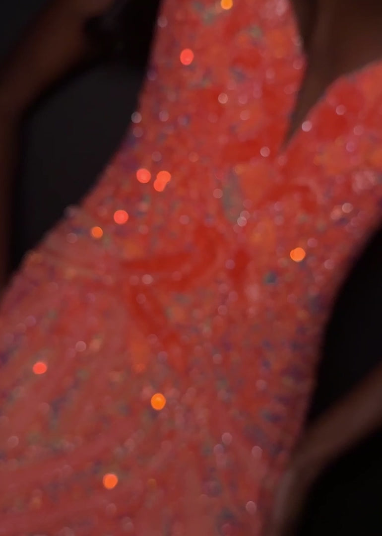 Step into the spotlight and make an unforgettable entrance with the 11236 Ashley Lauren Strapless Orange Floral Sequin Gown. The sweetheart neckline features a stunning floral sequin motif that cascades gracefully down the structured bustier, catching the light from every angle and creating a radiant, luminous effect. The fitted silhouette hugs your curves beautifully, while the left leg slit adds a hint of flirtatious movement. Every inch of this gown exudes sophistication, from the fully hand-beaded embellishments to the floor-length skirt, making it the perfect choice for prom, galas, weddings, or any black-tie event where you want to leave a lasting impression.