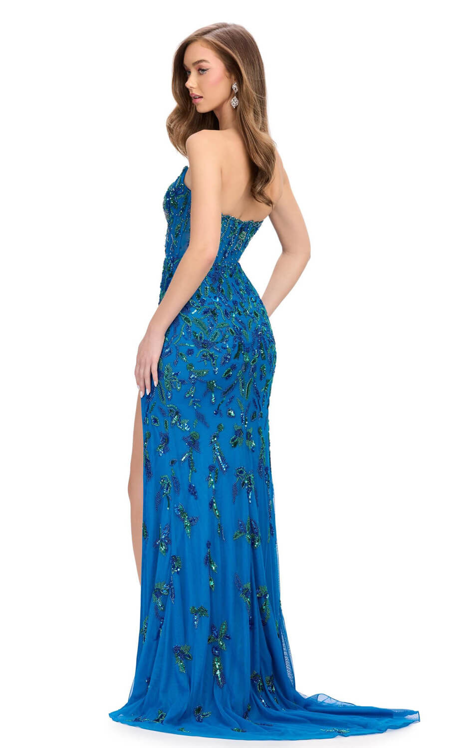 Make an unforgettable entrance in Ashley Lauren 11614, an exquisite fully beaded gown designed to make you feel like royalty. This stunning strapless silhouette features a romantic sweetheart neckline and an illusion corset bustier that sculpts and defines the waist. Intricate beadwork cascades throughout the gown, catching the light with every step for a truly luminous effect. A sleek left leg slit adds a modern, eye-catching touch, balancing elegance with allure. Perfect for prom, pageants, red carpet events, and any formal occasion where you want to shine.