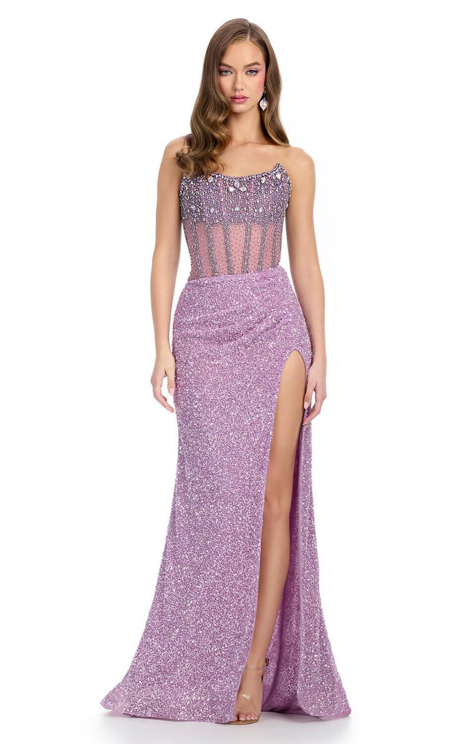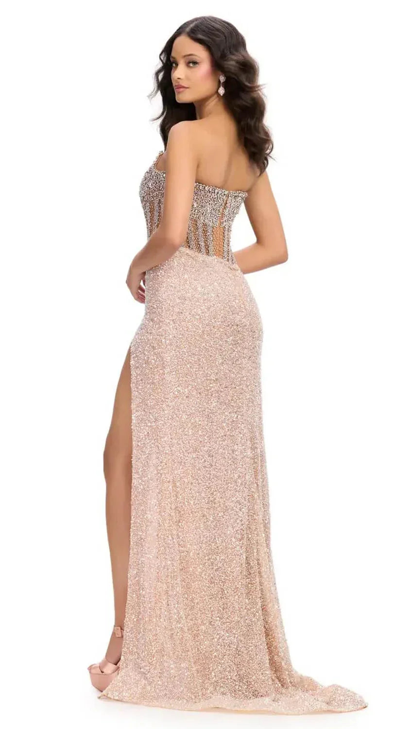 Ashley Lauren 11830 – Fully Beaded Corset Gown with Slit