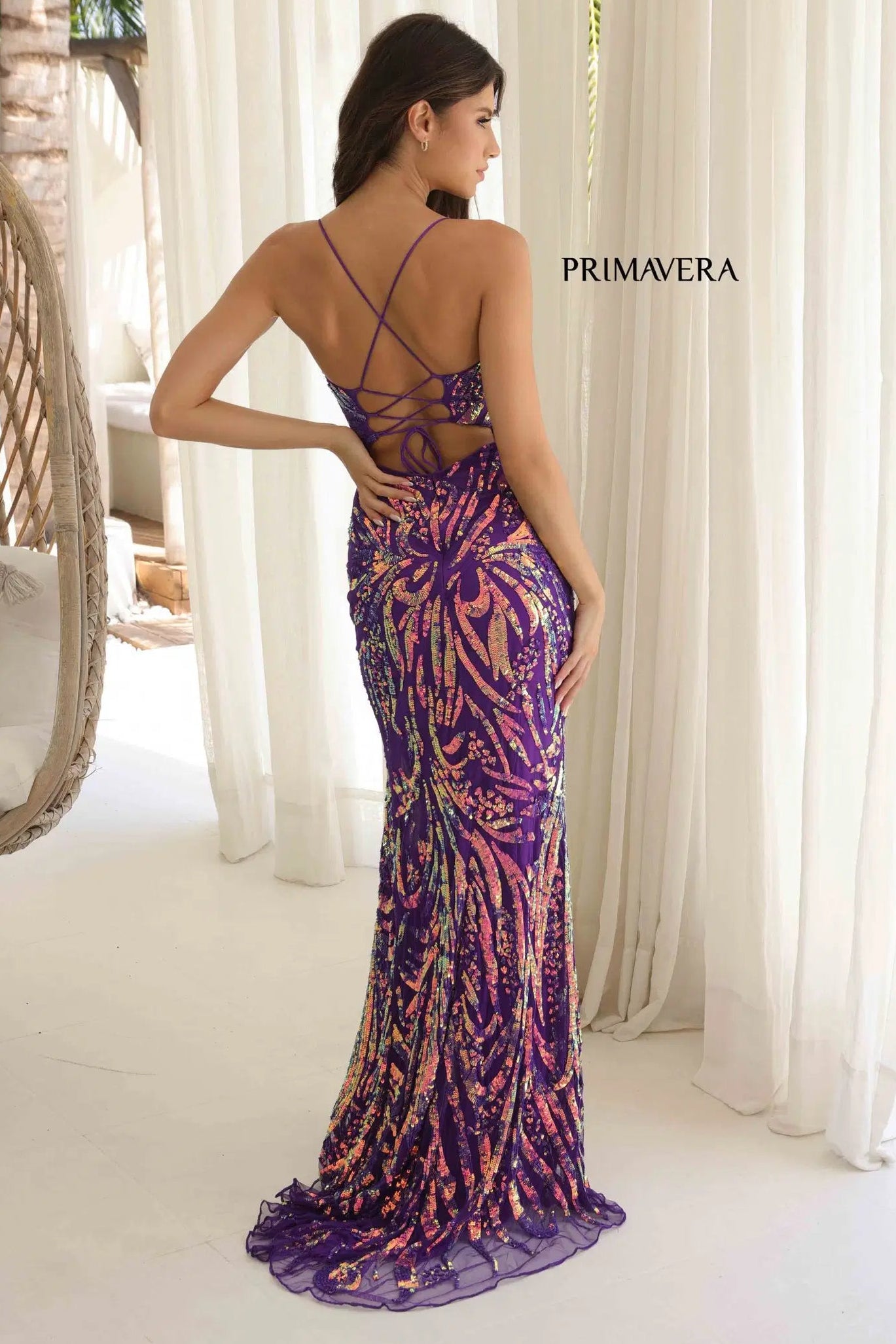 Shine with confidence in the breathtaking Primavera Style 4362, a long sequin gown designed to make an unforgettable statement. Intricately adorned with shimmering sequins, this dazzling silhouette creates a mesmerizing iridescent glow from every angle. The chic scoop neckline offers a modern, flattering touch, while the sultry open back adds bold allure. Elegant, eye-catching, and effortlessly glamorous, this gown is perfect for prom, formal galas, pageants, and special occasions where standout style is essential.