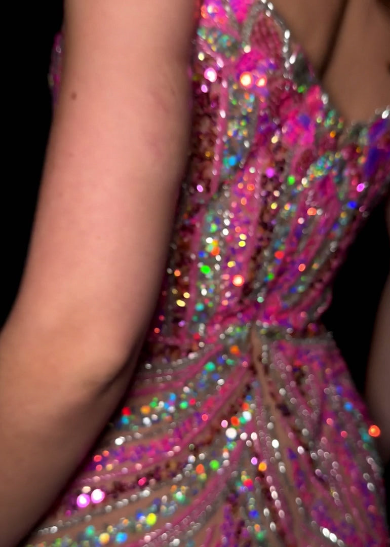 Make a dazzling entrance in the AshleyLauren 4500 Strapless Beaded V-Neckline Cocktail Dress. This glamorous mini dress features a structured strapless bodice with a plunging V-neckline, adding just the right amount of edge to a chic silhouette. Intricate beadwork covers the entire dress, creating a shimmering effect that catches the light from every angle.
