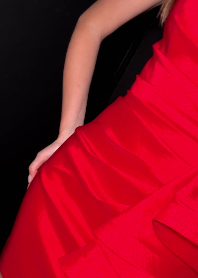 Your new favorite mini dress is here. ASHLEYlauren Style 4933, a strapless taffeta mini dress featuring a ruched bustier and a dramatic skirt ruffle is our newest obsession. This dress is ideal for cocktail parties, homecoming and special occasions.