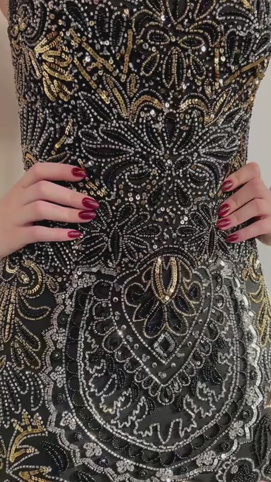 Primavera Couture's 4156 gown captures timeless elegance through its intricate beadwork and sequin embellishments. The refined scoop neckline and sleek sheath silhouette create a sophisticated foundation for the dress's ornate detailing, while the vintage-inspired aesthetic ensures you'll command attention with understated glamour. Perfectly balanced between ornate design and polished restraint, this gown is ideal for prom, formal events, and upscale soirées.
