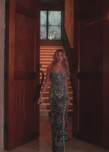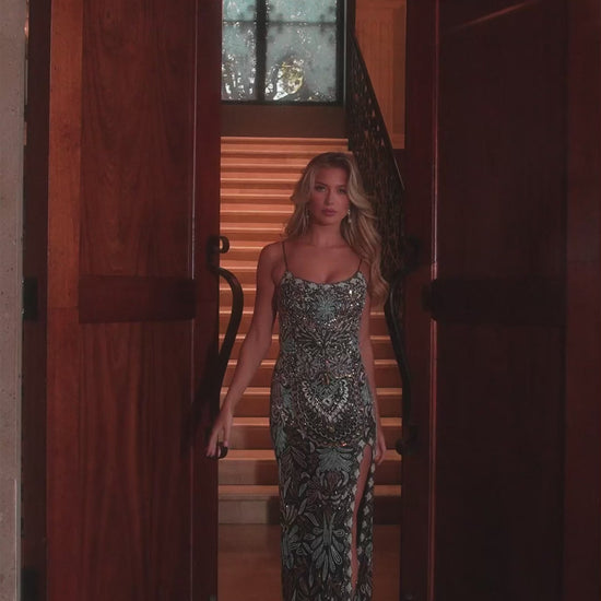 Primavera Couture's 4156 gown captures timeless elegance through its intricate beadwork and sequin embellishments. The refined scoop neckline and sleek sheath silhouette create a sophisticated foundation for the dress's ornate detailing, while the vintage-inspired aesthetic ensures you'll command attention with understated glamour. Perfectly balanced between ornate design and polished restraint, this gown is ideal for prom, formal events, and upscale soirées.