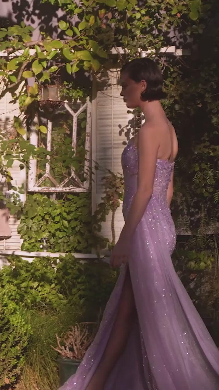 Turn heads in the Floral Motif Strapless Fitted Gown, a stunning blend of romance and sophistication. This fitted evening gown features a strapless sweetheart neckline adorned with dimensional floral appliqué and shimmering beadwork for a look that’s both elegant and unforgettable.