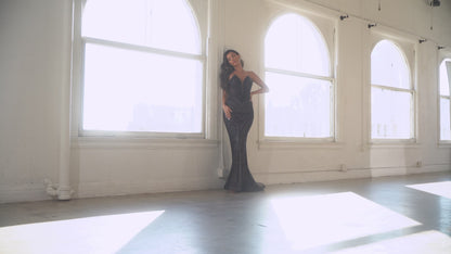 Turn heads on prom night with this show-stopping strapless beaded fitted gown. Featuring a stunningly fitted silhouette, pointed bust cups, and a plunging V-neckline, this dress is designed to accentuate your curves flawlessly. The sheer side cutouts add a touch of allure, with sparkling embellishments that light up the room. Fully adorned with intricate beading, this gown creates a magical, red-carpet-worthy look that exudes luxury and sophistication.