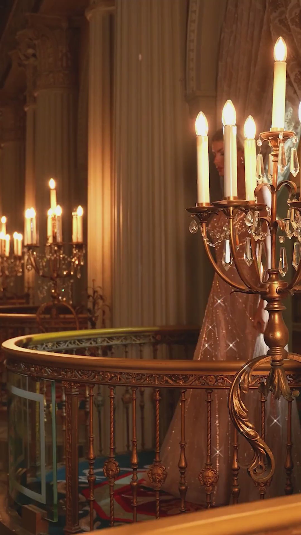 Effortlessly elegant, this A-line gown features a plunging V-neckline, delicate thin straps, and a gathered bodice that enhances the waist. The beaded tulle overlay adds a layer of shimmer and texture, creating a soft, ethereal effect with every movement. Finished with a structured bodice and flowing full skirt, this design is perfect for black tie galas and formal occasions.