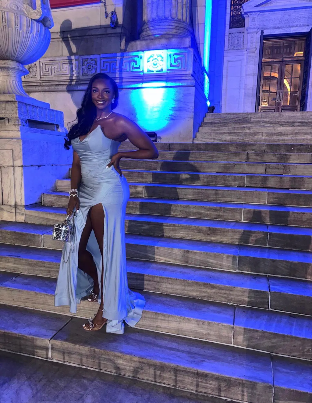 The Ava Gown is the epitome of elegance, featuring a stunning strapless pointed V-neckline and a gathered waist that enhances its graceful silhouette. The stylish leg slit adds a modern touch, making it perfect for bridesmaids, wedding guests, or any formal occasion.