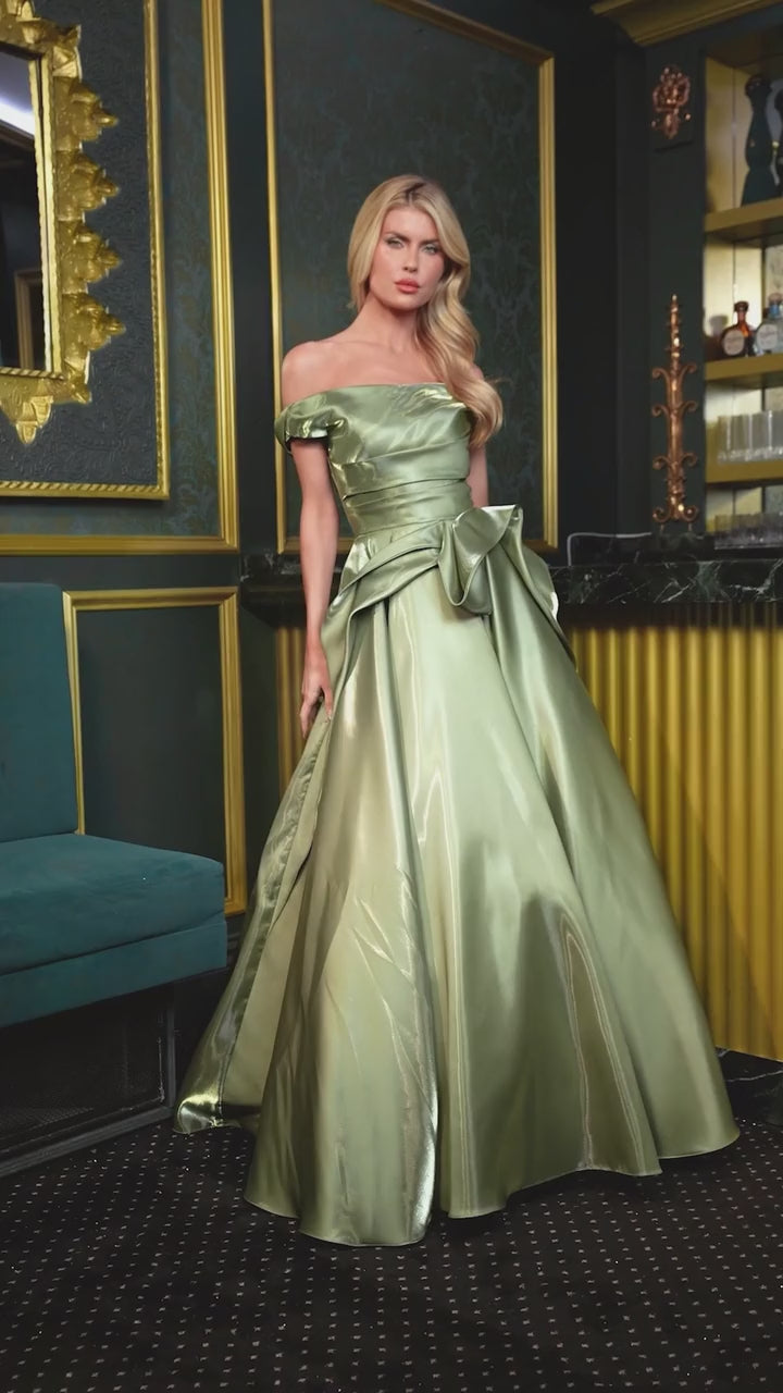 The Colette Gown is a showstopping ball gown designed to make an elegant entrance at any formal occasion. With a classic off-the-shoulder neckline and a delicately pleated waistline, this dress flatters the figure while exuding timeless sophistication.