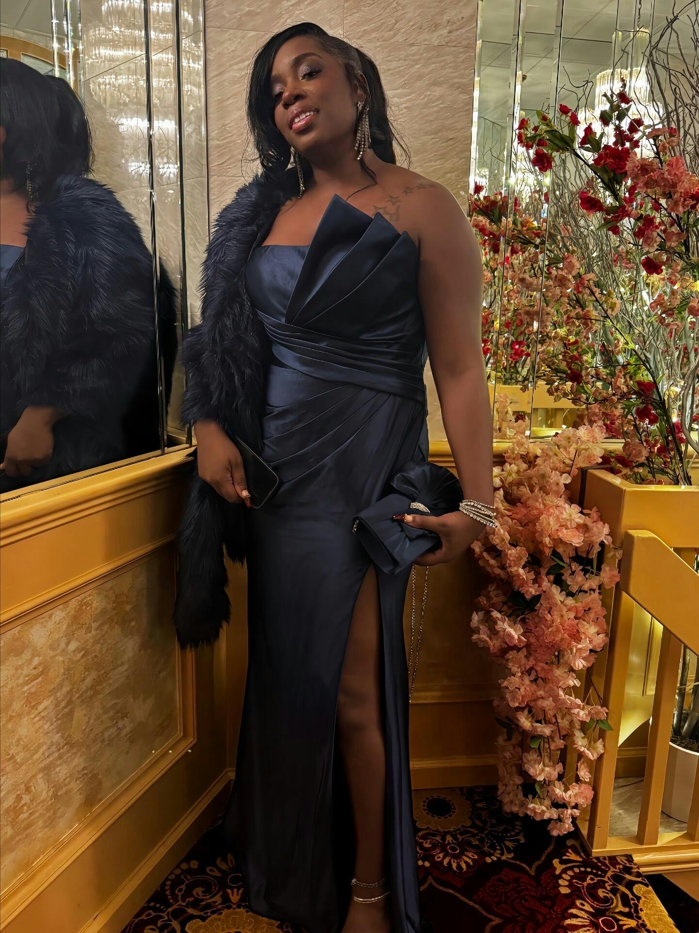 Whether you're attending a black-tie wedding, a formal gala, or walking down the aisle as a bridesmaid, this timeless design guarantees an unforgettable entrance.