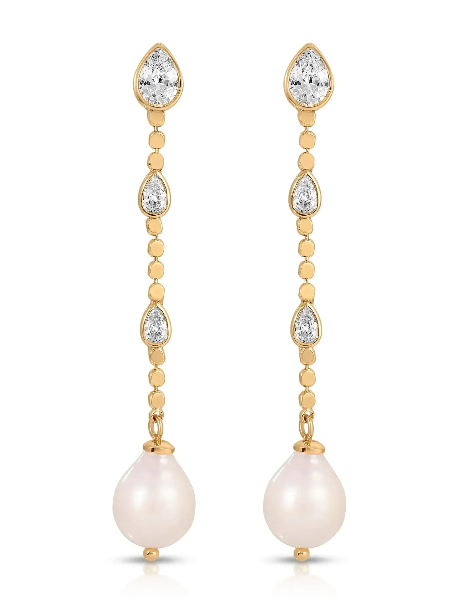 18k Gold Plating, Brass, Cubic Zirconia, Freshwater Pearl
