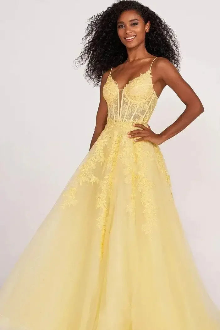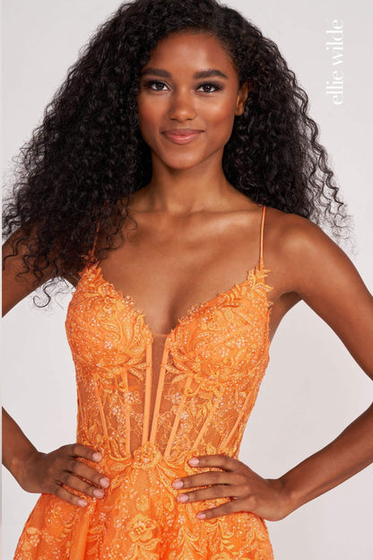 Capture hearts and turn heads in the mesmerizing Ellie Wilde dress EW34036. This stunning A-line evening gown is crafted from luxurious tulle, adorned with intricate embroidery and shimmering crystals that glisten with every movement. The strapless V-neckline exudes romance, while the corset lace-up back ensures a perfect, flattering fit. The elegant train adds an extra touch of sophistication, making this gown ideal for unforgettable moments. With an invisible zipper for seamless wear, this dress offers both beauty and ease, ensuring you make a memorable statement at any special occasion.