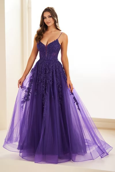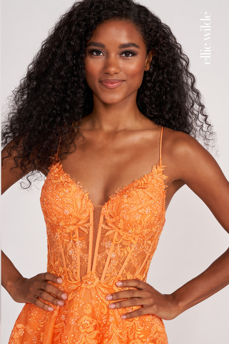 Capture hearts and turn heads in the mesmerizing Ellie Wilde dress EW34036. This stunning A-line evening gown is crafted from luxurious tulle, adorned with intricate embroidery and shimmering crystals that glisten with every movement. The strapless V-neckline exudes romance, while the corset lace-up back ensures a perfect, flattering fit. The elegant train adds an extra touch of sophistication, making this gown ideal for unforgettable moments. With an invisible zipper for seamless wear, this dress offers both beauty and ease, ensuring you make a memorable statement at any special occasion.