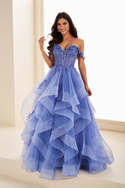 Refined and effortlessly elegant, the EW35084 by Ellie Wilde is designed for graceful movement and timeless appeal. Flowing tulle creates a soft, romantic drape, while intricate lace detailing adds texture and visual interest throughout the gown. The flattering A-line silhouette skims the figure beautifully, complemented by a plunging neckline that brings a modern, confident edge. Finished with a scoop back, this gown offers a balanced blend of classic elegance and contemporary style.