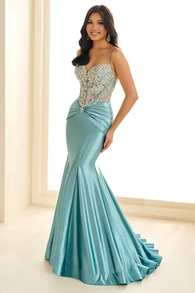 Exude romance and sophistication in the breathtaking Ellie Wilde dress EW36004. This stunning mermaid gown is crafted from luxurious stretch knit, adorned with delicate lace appliqués and shimmering stone accents for a touch of glamour. The sweetheart neckline and sleeveless design beautifully frame the shoulders, enhancing the silhouette. A dropped waistline and corset bodice add an elegant structure, creating a captivating and flattering look. Perfect for any special occasion, this dress promises to leave a lasting impression with its timeless charm and refined beauty.