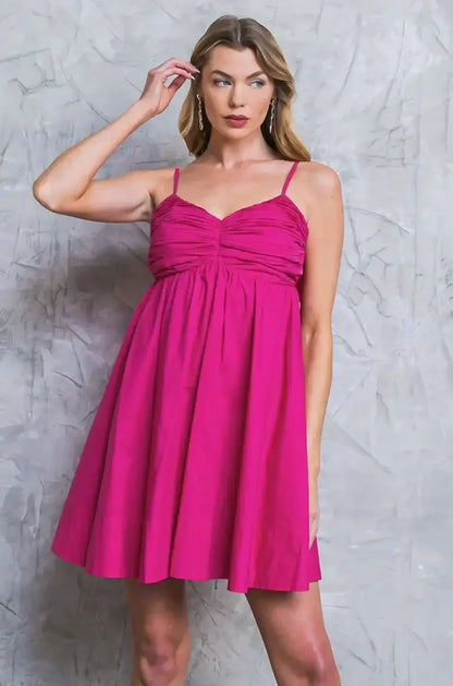 This GIVE IT A GUESS WOVEN MINI DRESS is the perfect pick for occasions. Its solid woven fabric and pleated bodice create an alluring silhouette, while its cami top and open back with tie detailing add to the femininity of the look. Effortlessly stylish, this mini dress is great for any event.