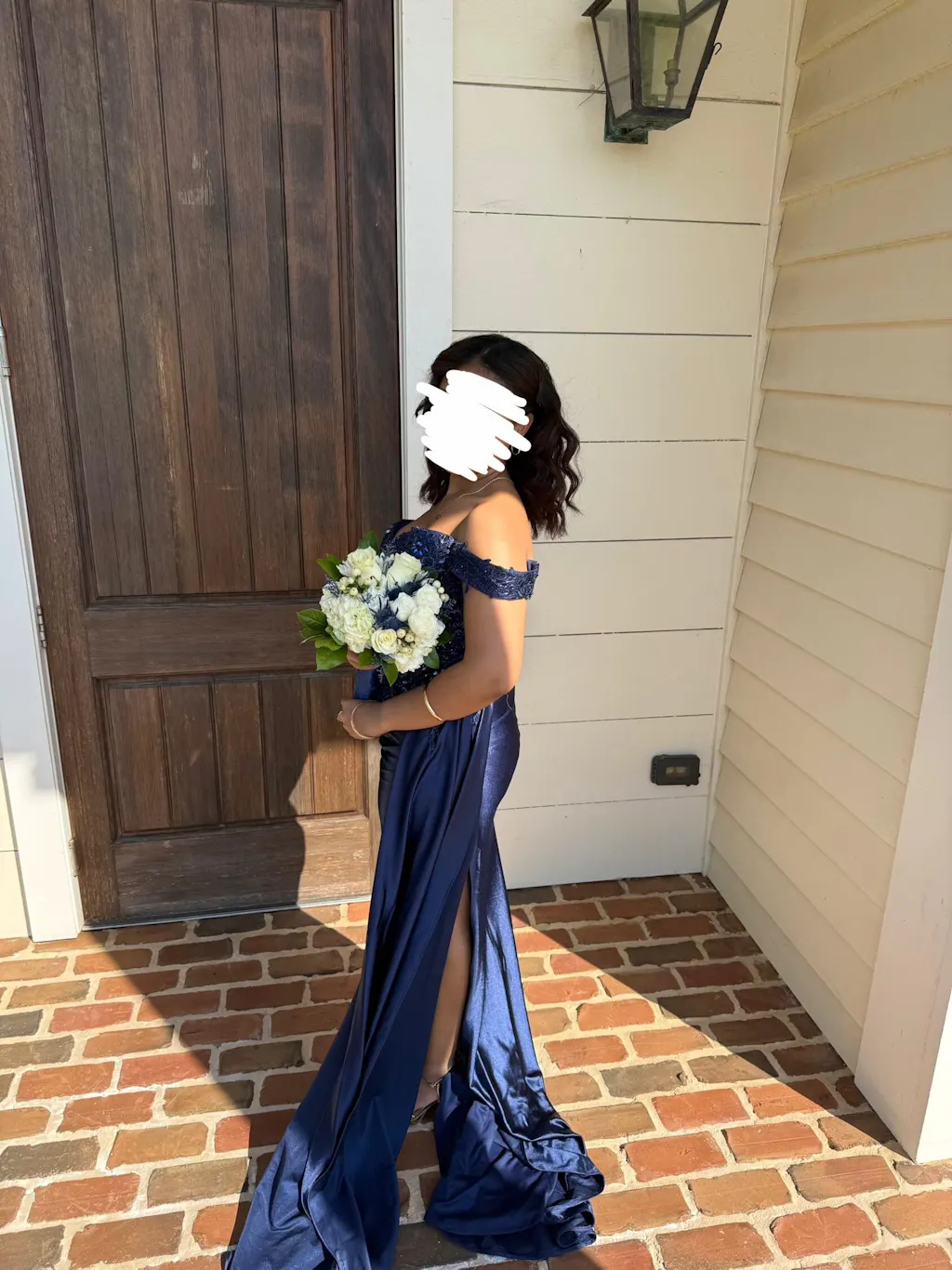 Step into timeless elegance with our Off-the-Shoulder Lace & Satin Gown, designed for the modern woman who embraces classic romance. The lace-embellished bodice features a flattering sweetheart neckline and romantic off-the-shoulder sleeves, beautifully accentuating the neckline and shoulders.