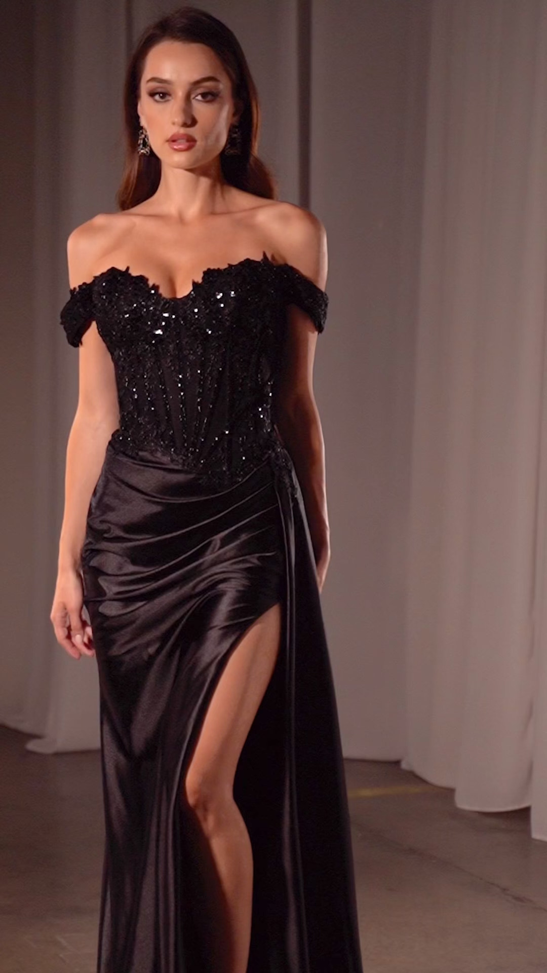 Step into timeless elegance with our Off-the-Shoulder Lace & Satin Gown, designed for the modern woman who embraces classic romance. The lace-embellished bodice features a flattering sweetheart neckline and romantic off-the-shoulder sleeves, beautifully accentuating the neckline and shoulders.