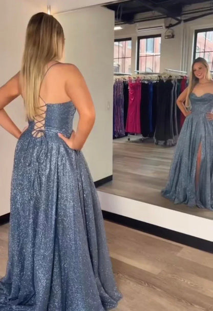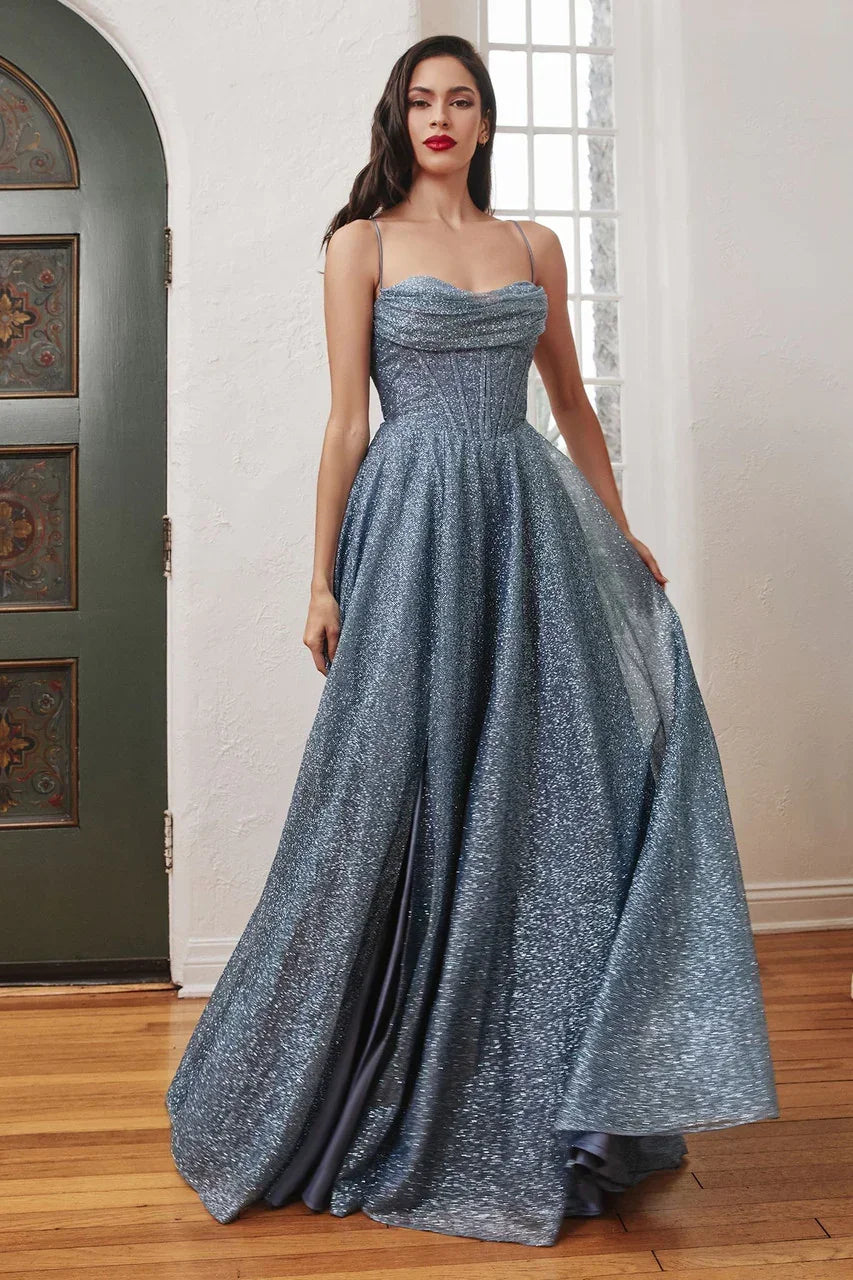 • Glitter Notice: A light glitter overlay gives this gown its signature sparkle. Some glitter shedding is normal and not considered a defect.