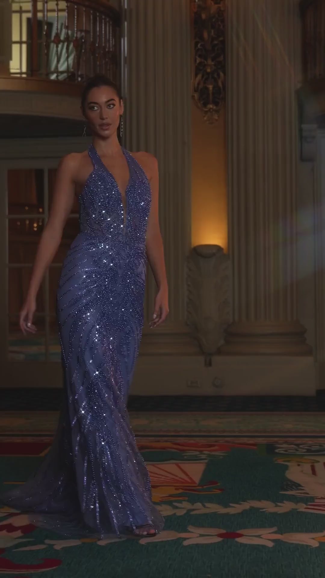 Kingston Gown - Halter Beaded Mermaid Evening Dress
