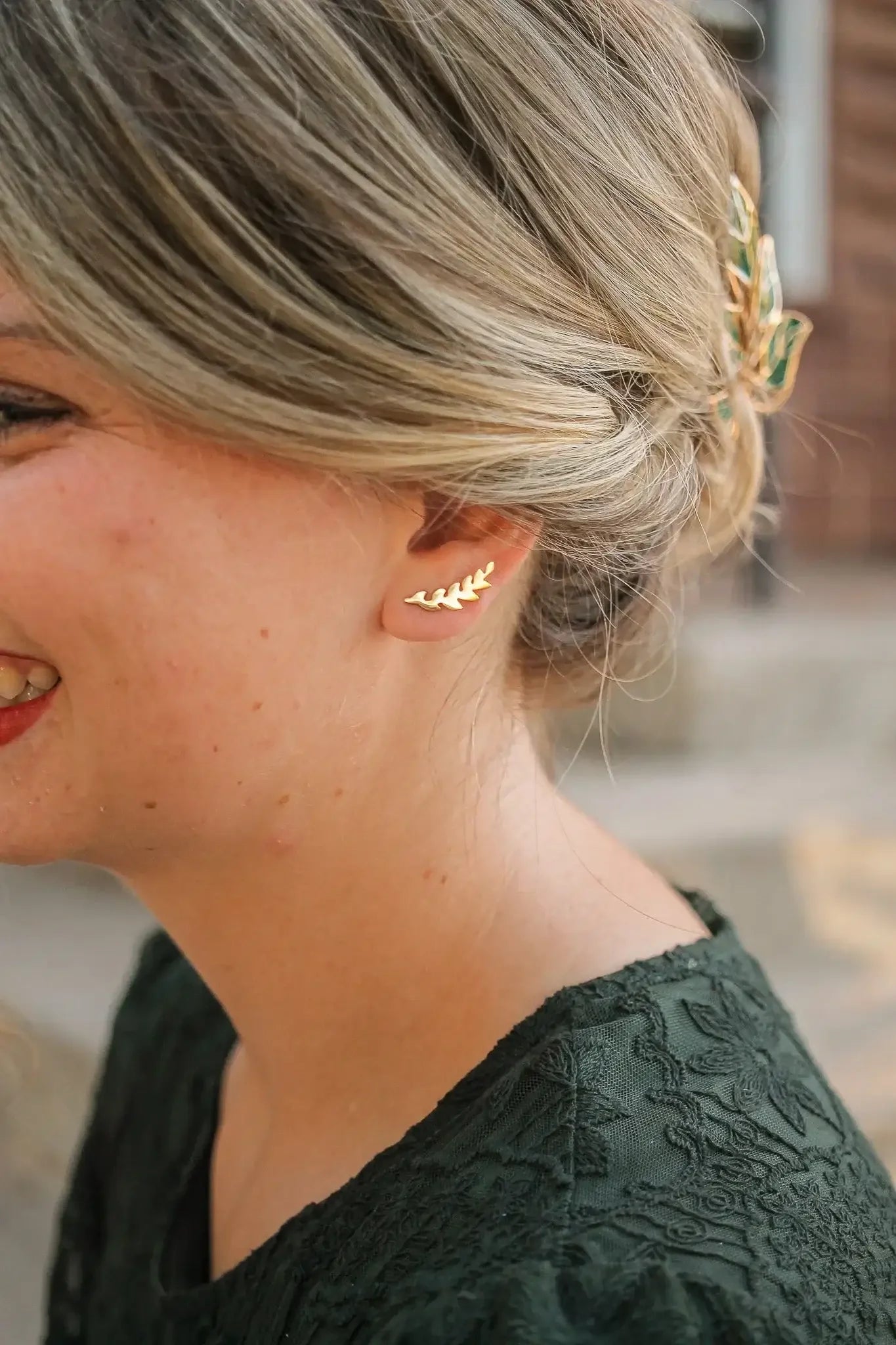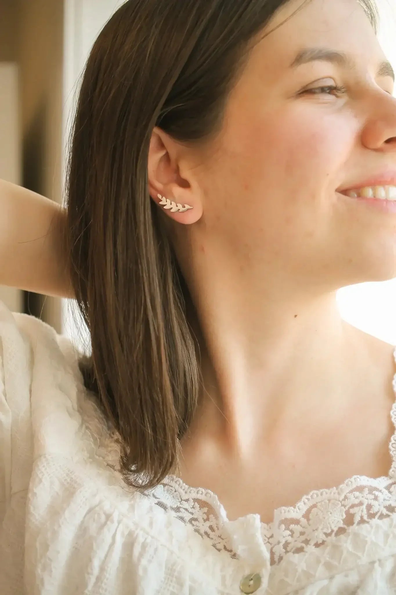 If you haven't heard of climber studs before, let me introduce you to them! Climber studs are a type of stud earring that is meant to be a little bit longer in length than a traditional stud, so that when it's worn it takes up most of the space on your lobe, and give the appearance that it's "climbing" up the side of your ear. And let me tell you... This climber style stud earring is SO ethereal and classy. You NEED this stud in your collection because it is PERFECT for casual and formal occasions alike!