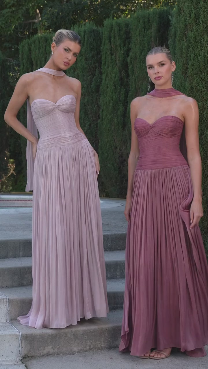 Softly radiant and effortlessly elegant, the Linnea Gown is designed to move gracefully through every special moment. Featuring a strapless sweetheart neckline, this gown showcases a finely ruched bodice crafted from pleated luminescent chiffon that catches the light with a subtle, refined sheen. The sculpted bodice enhances the figure while maintaining a romantic, timeless aesthetic. An airy A-line skirt flows beautifully with each step, offering comfort and effortless movement. The Linnea Gown is a graceful choice for ceremonies, receptions, and formal celebrations alike.