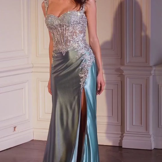 Dance the night away in our Melrose Gown! Featuring a sweetheart neckline, delicate straps, crystal-beaded lace appliqué, and a leg slit, this fit-and-flare gown will make you stand out at any formal event. The soft stretch satin hugs your figure for a graceful and elegant look. A statement of sophistication, perfect for prom or black tie affairs.