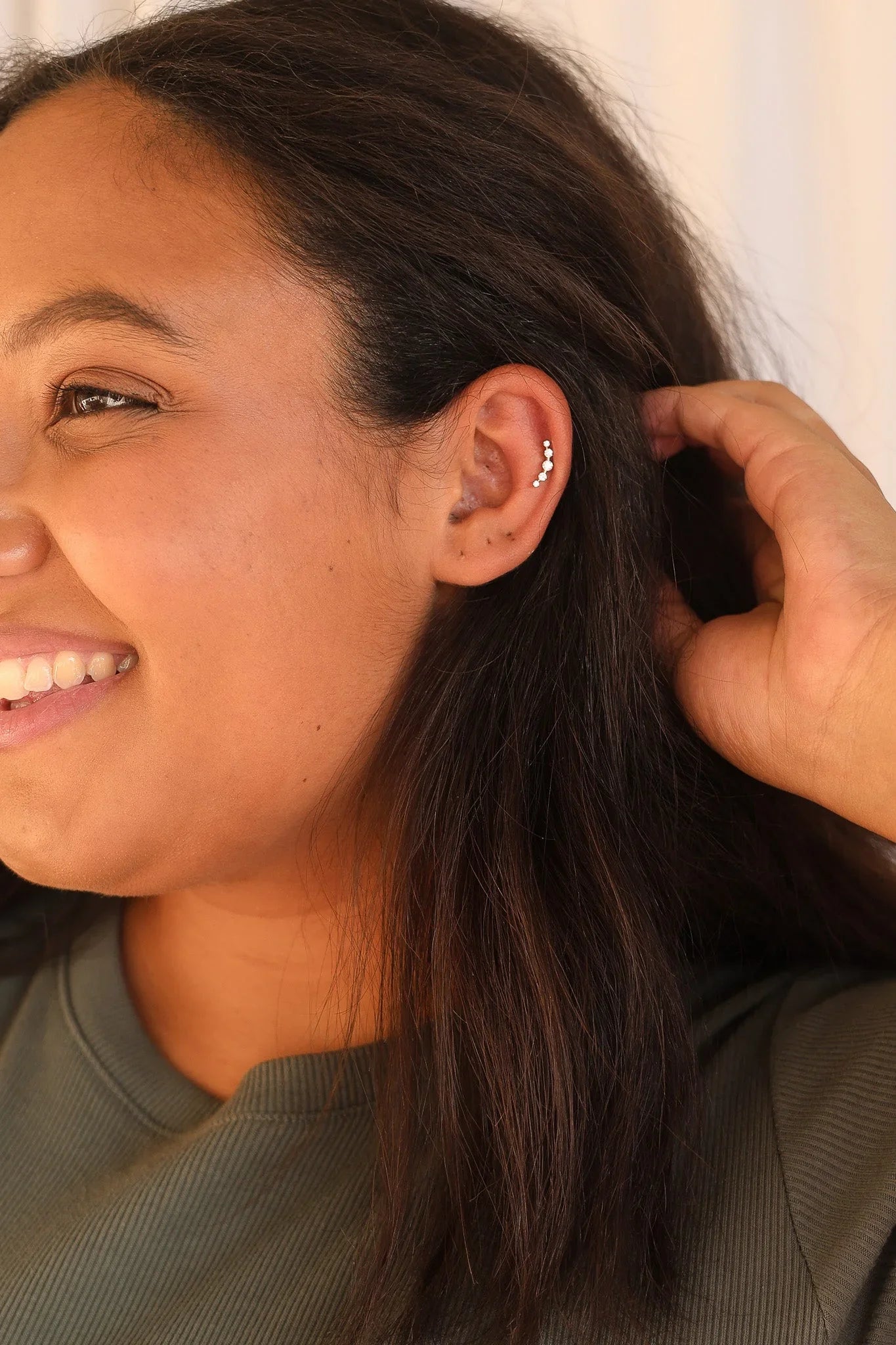 Flat back studs are seriously so amazing- especially for side sleepers, headphone users, and anyone that likes to keep their jewelry in for months at a time! Because of their unique flat back design they are actually comfortable to sleep in, as they don't poke the back of your head. They can be worn in just about any type of ear piercing, and are all hypoallergenic and nickel free- which makes them safe for new piercings and for those with skin sensitivity too. They are also tarnish proof and waterproof so you can them for months at a time, including in the shower and in the pool!
