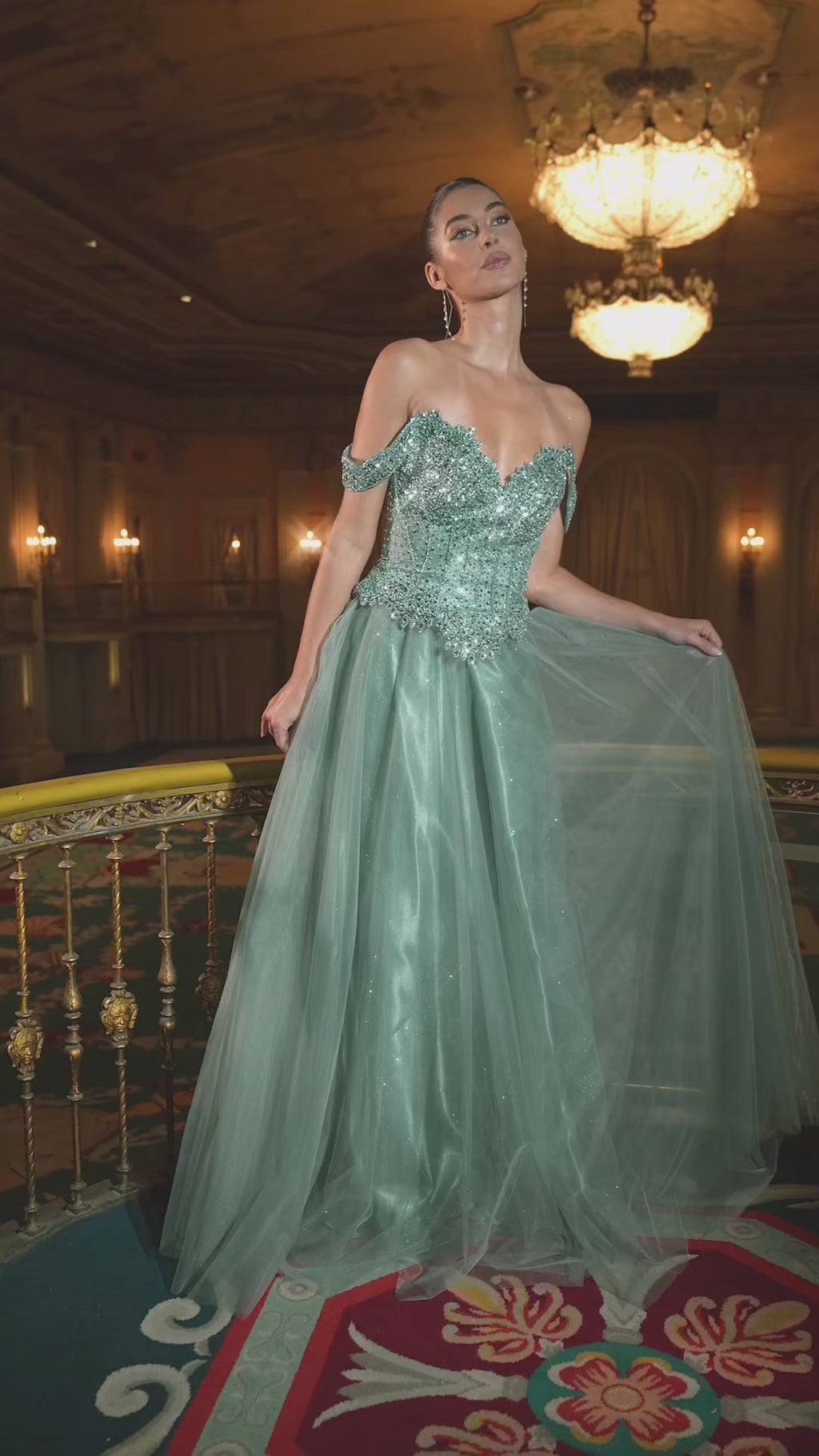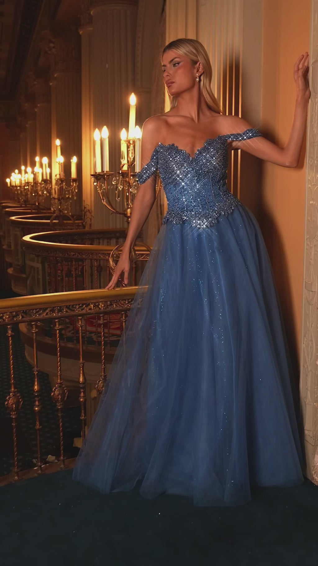 Exude sophistication in the NOELLE GOWN, featuring an off-the-shoulder sweetheart neckline and a crystal-and-sequin beaded bodice. Its structured design and lace-up corset back ensure a flattering fit, while the layered glitter tulle skirt adds elegant movement and shimmer. Perfect for black tie events, this A-line dress combines timeless charm with sparkling detail.