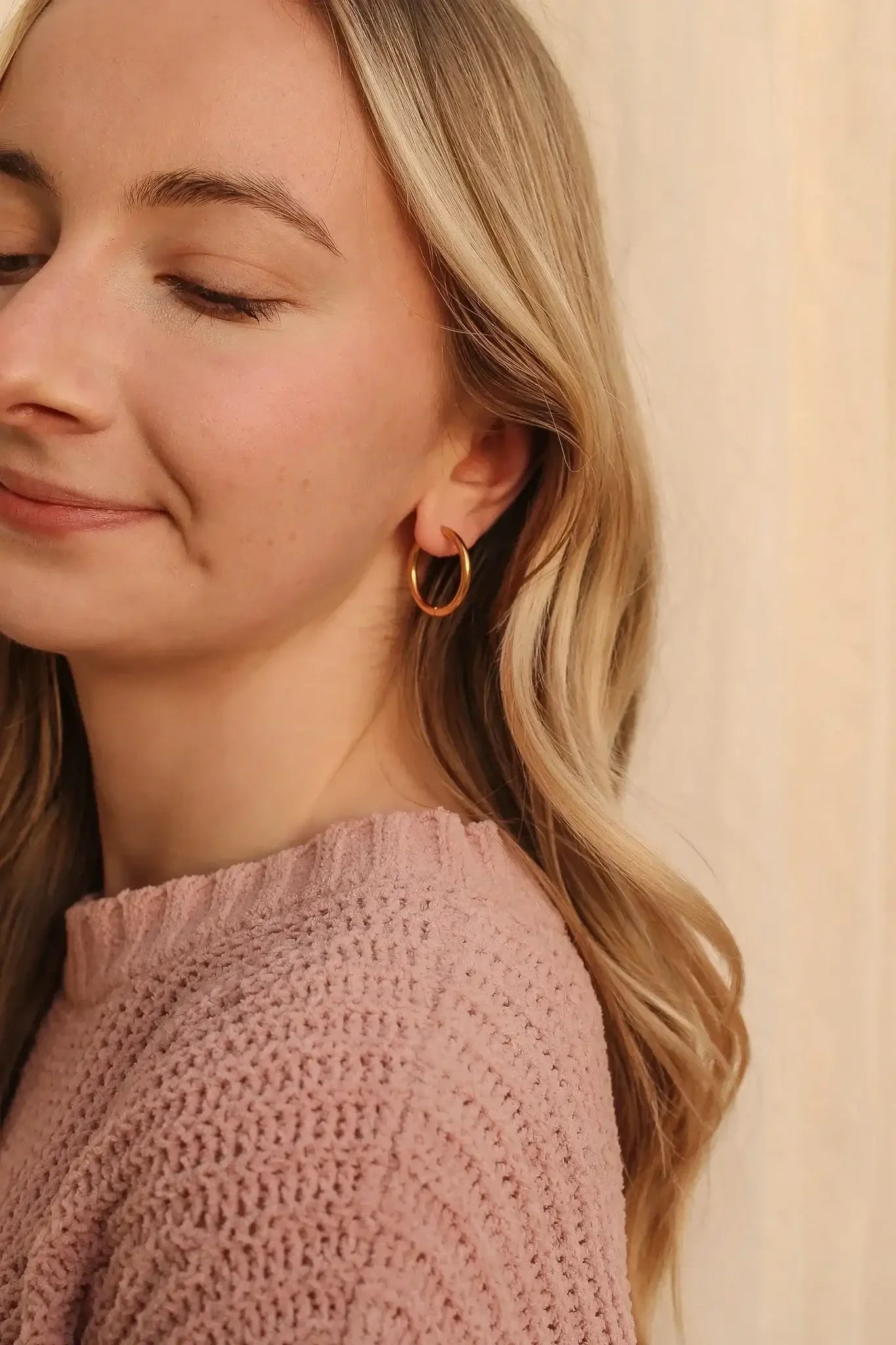 These are the perfect everyday hoop earring! You can COMFORTABLY sleep in these, plus, since they are waterproof, you can also shower and swim in these without worrying about them tarnishing or rusting! The smaller sizes are perfect for cartilage or second or third lobe piercings and the larger sizes are perfect for any lobe piercings. You can mix and match these to create the cutest ear stack or wear them along for a dainty, minimal look! We are obsessed with these at Rose and Clay HQ, so you absolutely NEED at least one pair of these in your jewelry box!