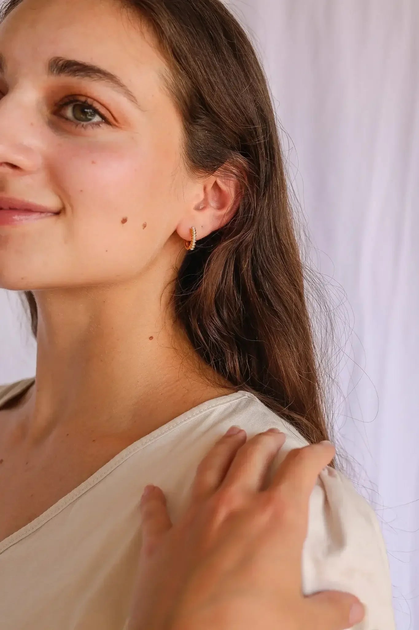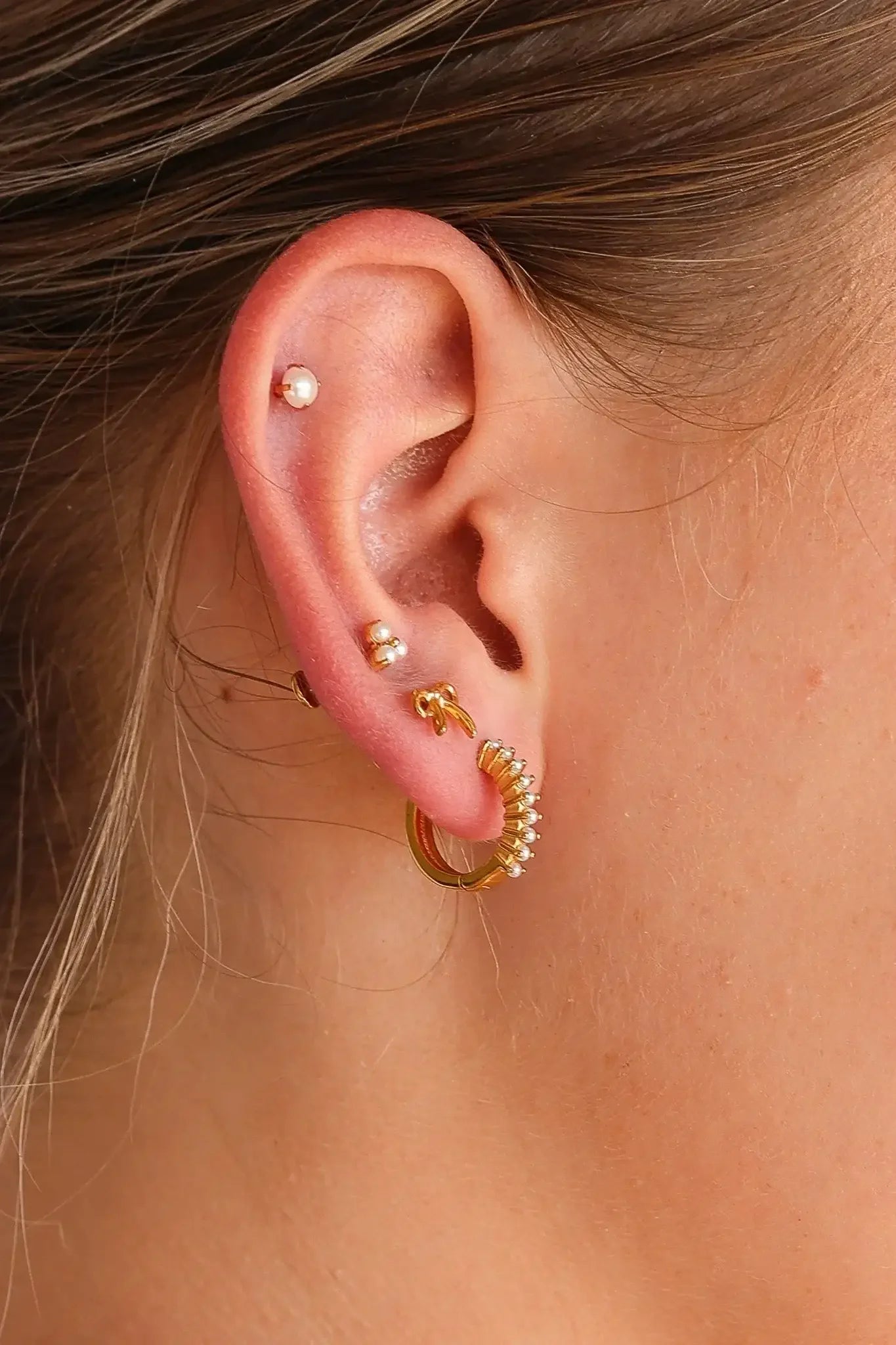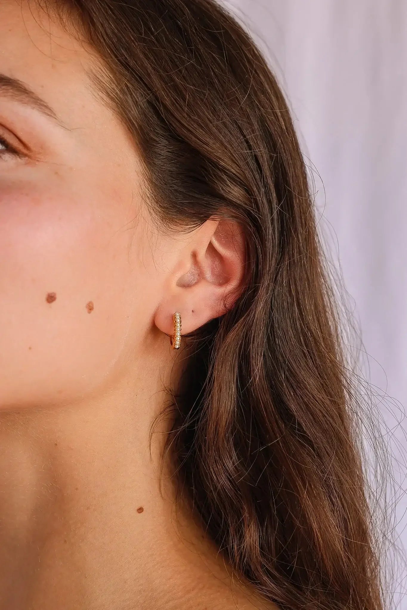 These mini hoops are EVERYTHING. The quality is absolutely unmatched on these little hoops. Their dainty size makes them super versatile for everyday wear, while the little pearls make them feel a little more elevated and special. They are the perfect mini hoop for all ages, seasons and styles!