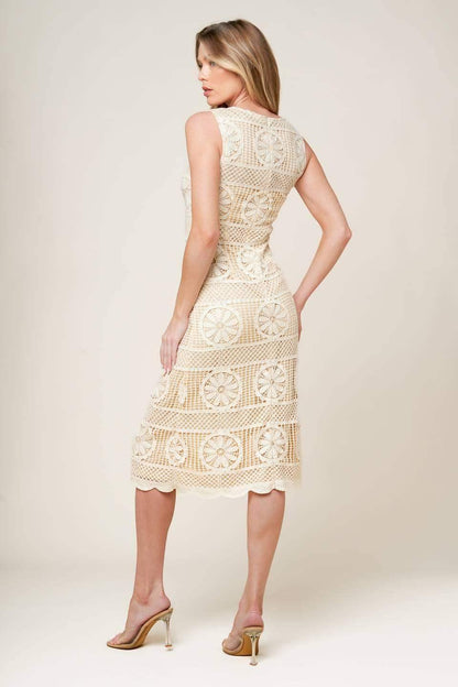 Elegant and effortlessly romantic, the Rebecca Lace Midi Dress is a true classic. Crafted in delicate cream crochet lace, this sleeveless midi features a soft round neckline and a clean, streamlined silhouette. The intricate texture adds vintage-inspired charm, while a hidden back zipper ensures a perfect fit. Ideal for showers, garden parties, or any moment that calls for subtle sophistication.