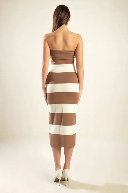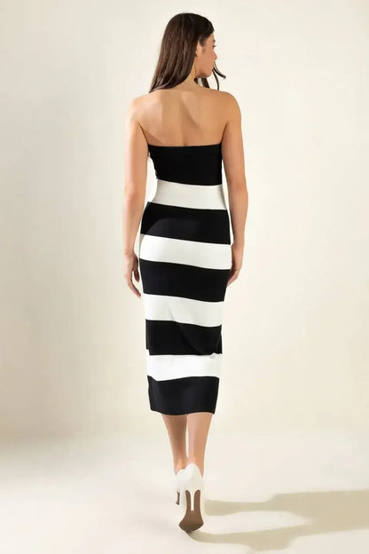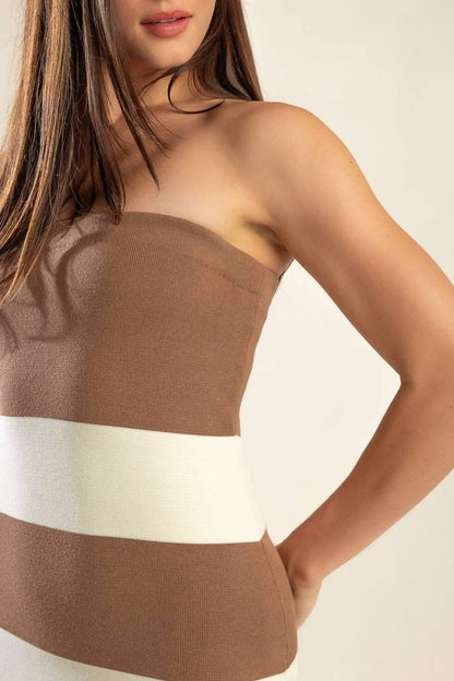 Elevate your style with our Romantic Afternoon strapless knit dress. Showcasing a chic colorblocked design, this midi dress exudes effortless sophistication. Made from high-quality sweater knit, it's soft and comfortable for all-day wear. Perfect for any occasion, dress it up or down for a versatile and stylish look.
