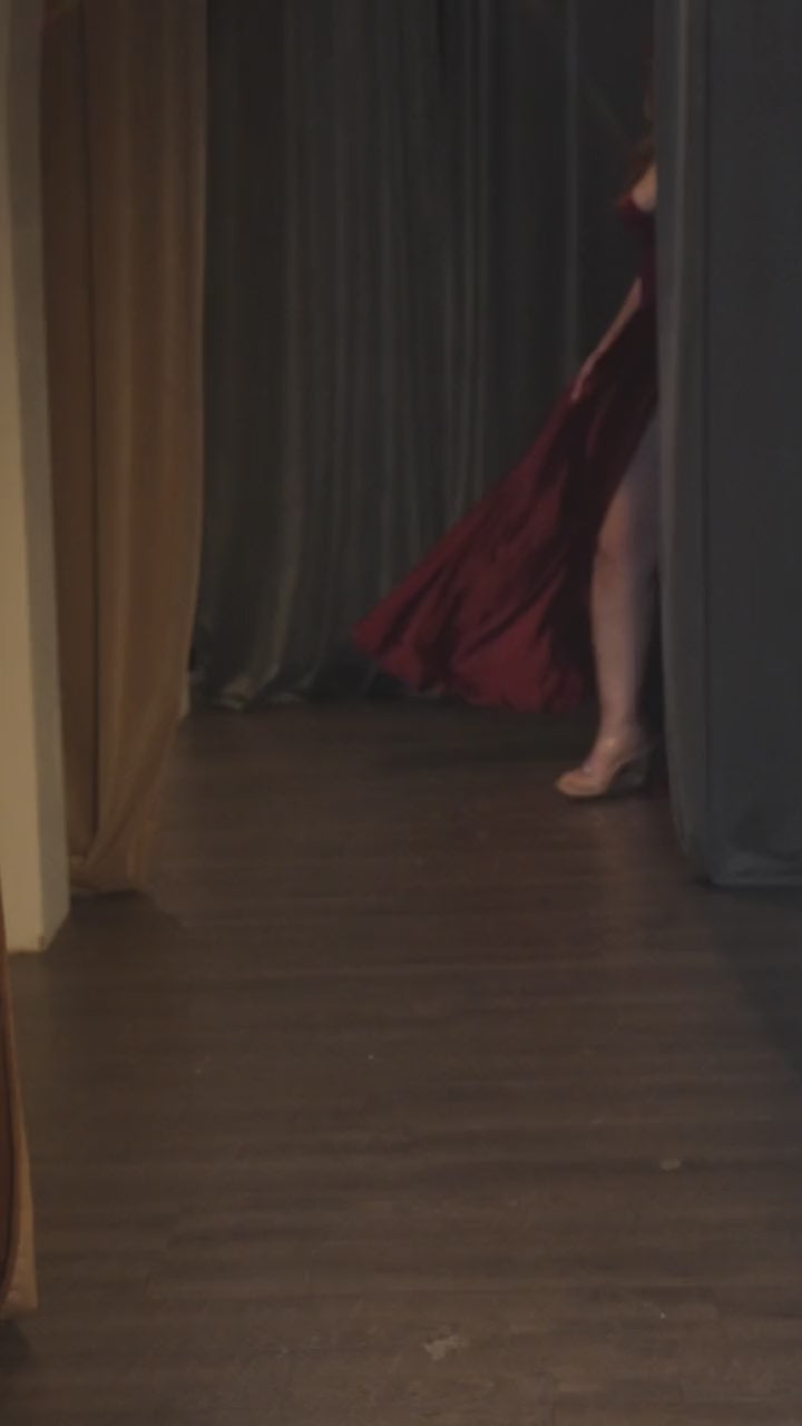 • Design: Sweetheart neckline, gathered waistline & leg slit