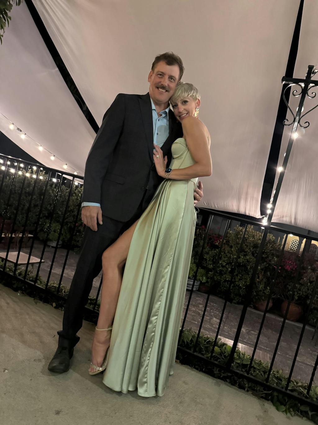 • Design: Sweetheart neckline, gathered waistline & leg slit