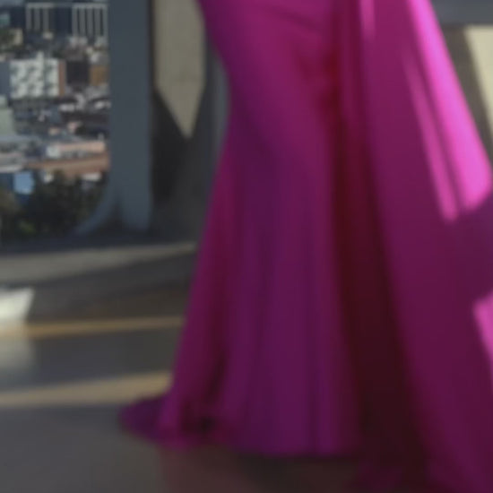 • Design: One shoulder with a sweetheart neckline, pleated waistline, sash