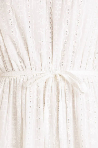 Sleeveless white mini dress with eyelet texture