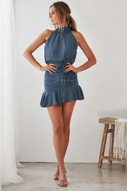 The Pip Dress features a classy shirred high neckline which has stretch and is made from a light weight textured polka dot fabric. It has lining and two buttons at the back of the neck. It has a concealed side zipper.