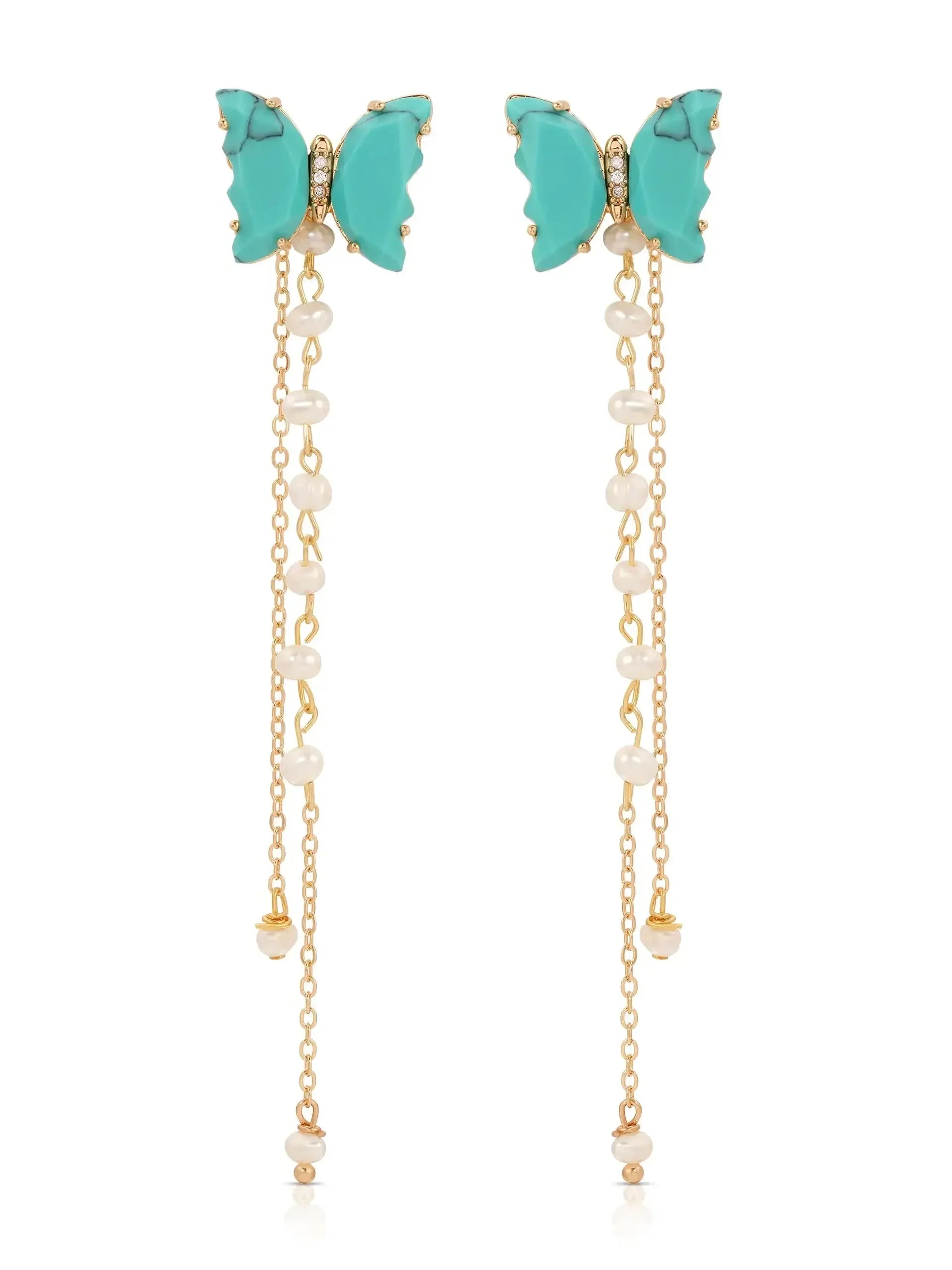 18k Gold Plated, Brass, Reconstituted Turquoise, Freshwater Pearl