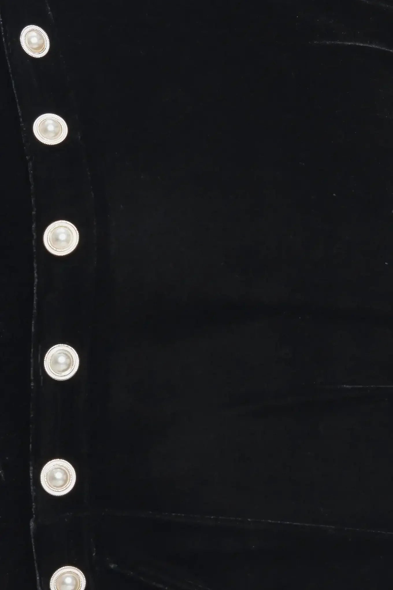 This velvet midi dress combines sophistication and comfort with a round neckline and long sleeves for a timeless silhouette. The side pearl button detailing adds a refined touch, while the back zipper ensures a smooth fit. Perfect for elegant occasions, this piece offers both style and ease.