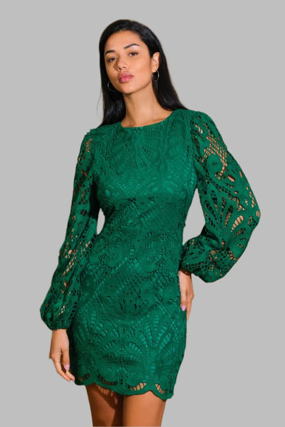 Made from custom-designed lace, the dress features delicate unlined lace trim at the waist and hem for a light, airy look. The body is fully lined for comfort and finished with a concealed back zipper for a smooth fit.